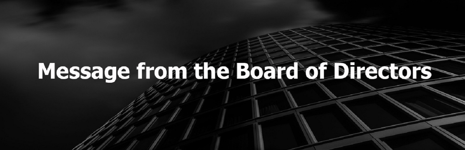 On behalf of our Board of Directors, we wish to contribute to a sustainable future together with you and to realize very good works.